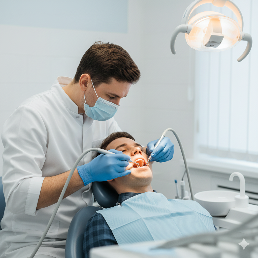- Détartrage ultrasonique – retrait du tartre en douceur.